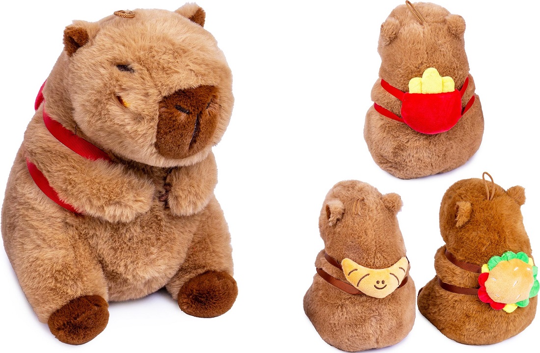 Plüsch Capybara mit Snackrucksack 3/s ca. 20cm (Pommes, Burger, Croissant)