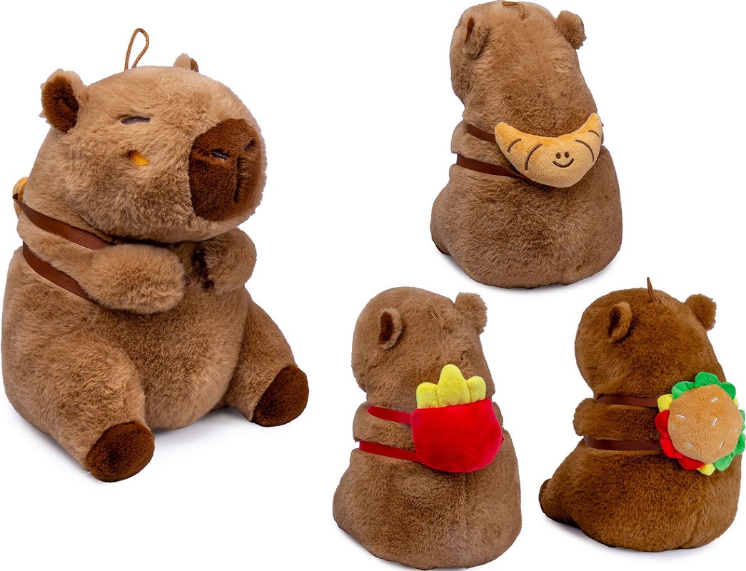 Plüsch Capybara mit Snackrucksack 3/s ca. 25cm (Pommes, Burger, Croissant)