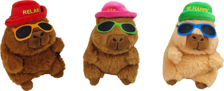 Plüsch Capybara sitzend, mit Sonnenbrille & Hut, 3/s ca. 17cm (Relax, ZZZ…, Be Happy)