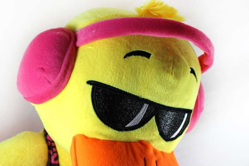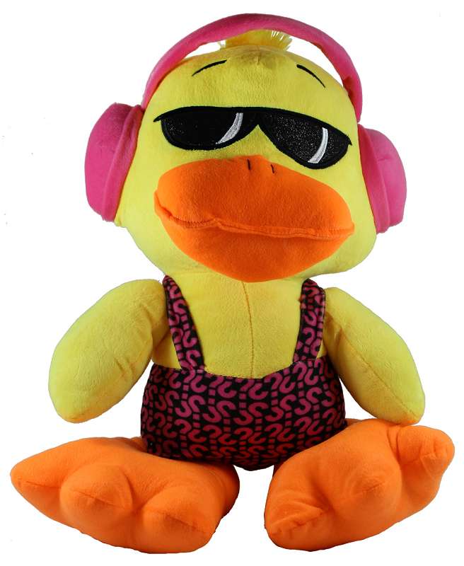VE:1 Plüsch Ente Hip-Hop mit Kopfhörern+Sonnenbrille+Latzhose, stehend ca. 45cm