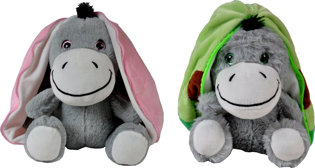 Plüsch Esel mit GlitzerAugen & Erdbeer- / Avocado Ohren + Reißverschluss zum ver
