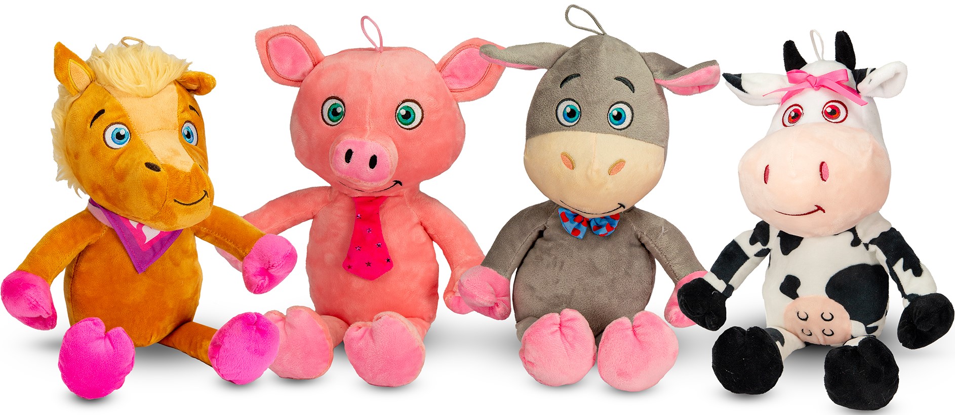 Plüsch Farmtiere mit süßen Accesoires 4/s ca. 28/40cm (Pferd, schwein, Esel, Kuh)