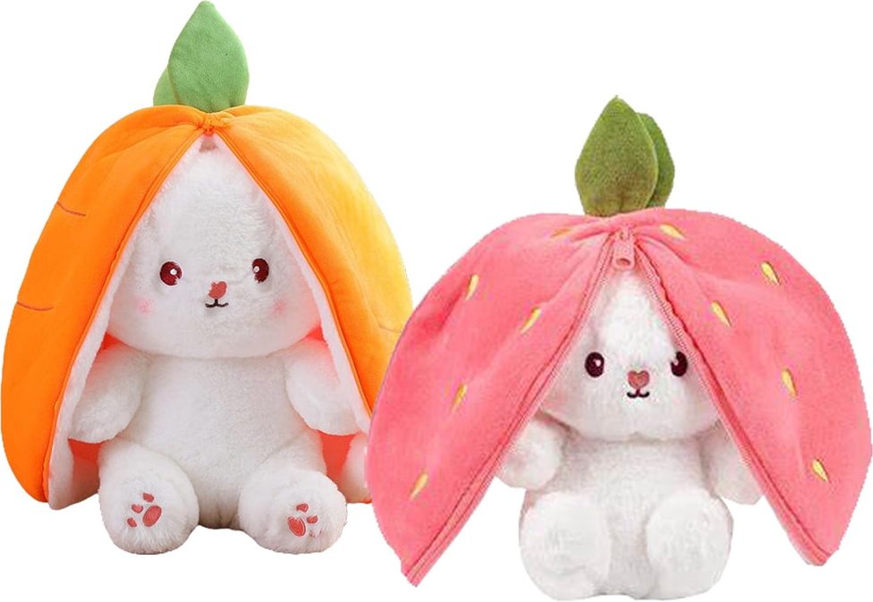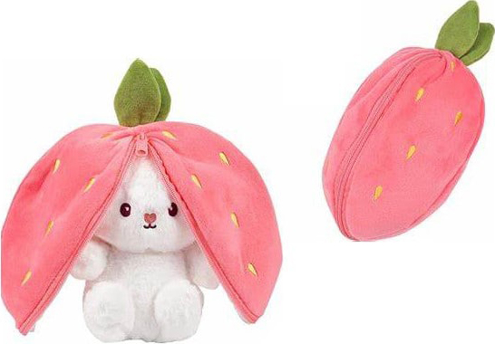 Plüsch Hase mit Hernase & Karotten- / Erdbeer Ohren + Reißverschluss zum verstec