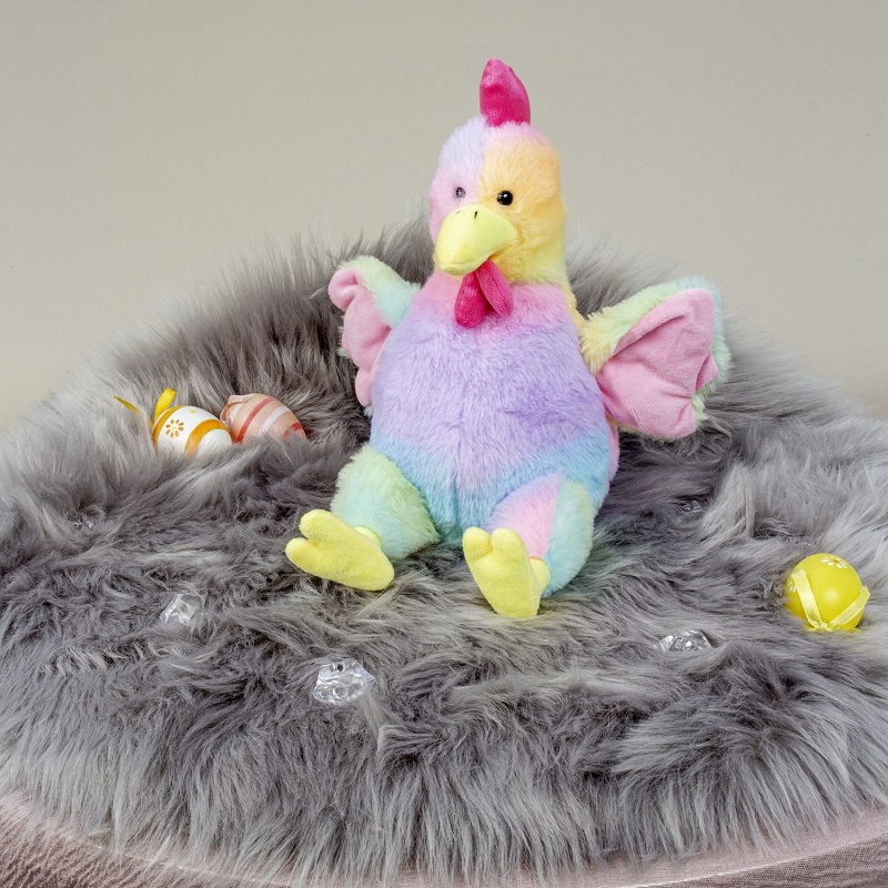 Plüsch Huhn Bunt sitzend in Pastell-Regenbogenfarben ca. 26cm