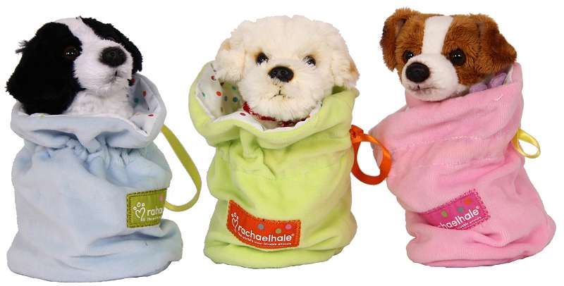 VE:9 Plüsch Hund mit Halsband im Kuschelsack 3-fach sort.ca. 17cm im Dsp.