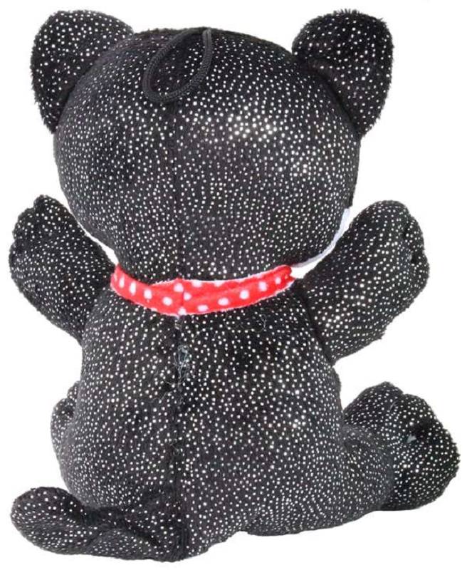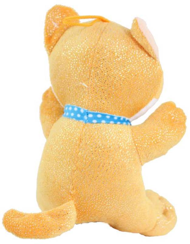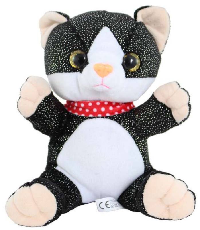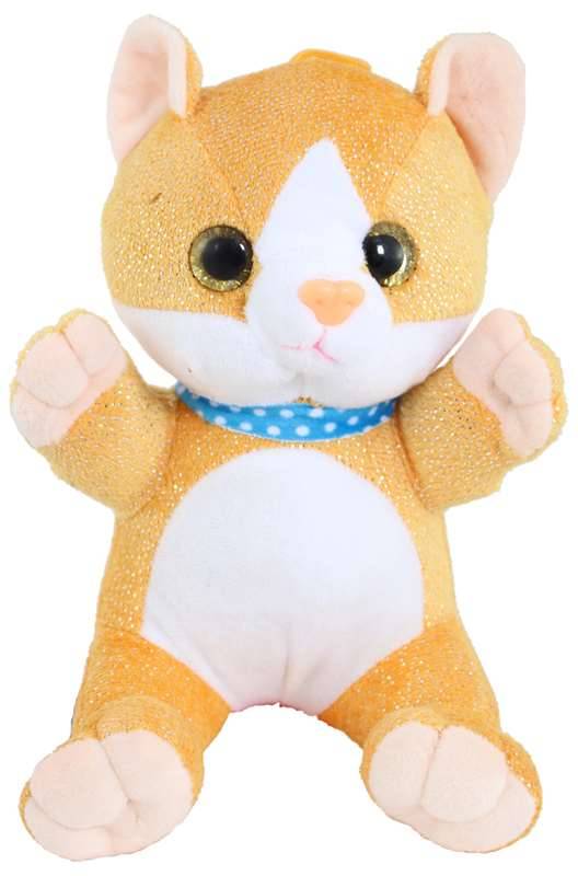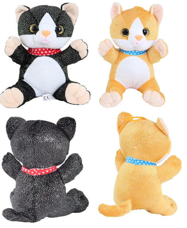 Plüsch Katze mit Glitzeraugehn&Glitzer Fell u.Halsband 2-farben sort. Ca. 18cm
