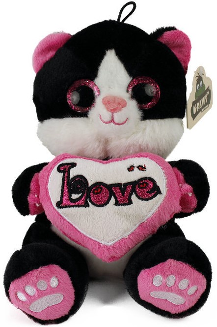 Plüsch Katze sitzend mit pinken GlitzerAugen & Herz "Love" ca. 20cm 3/s (Schwarz