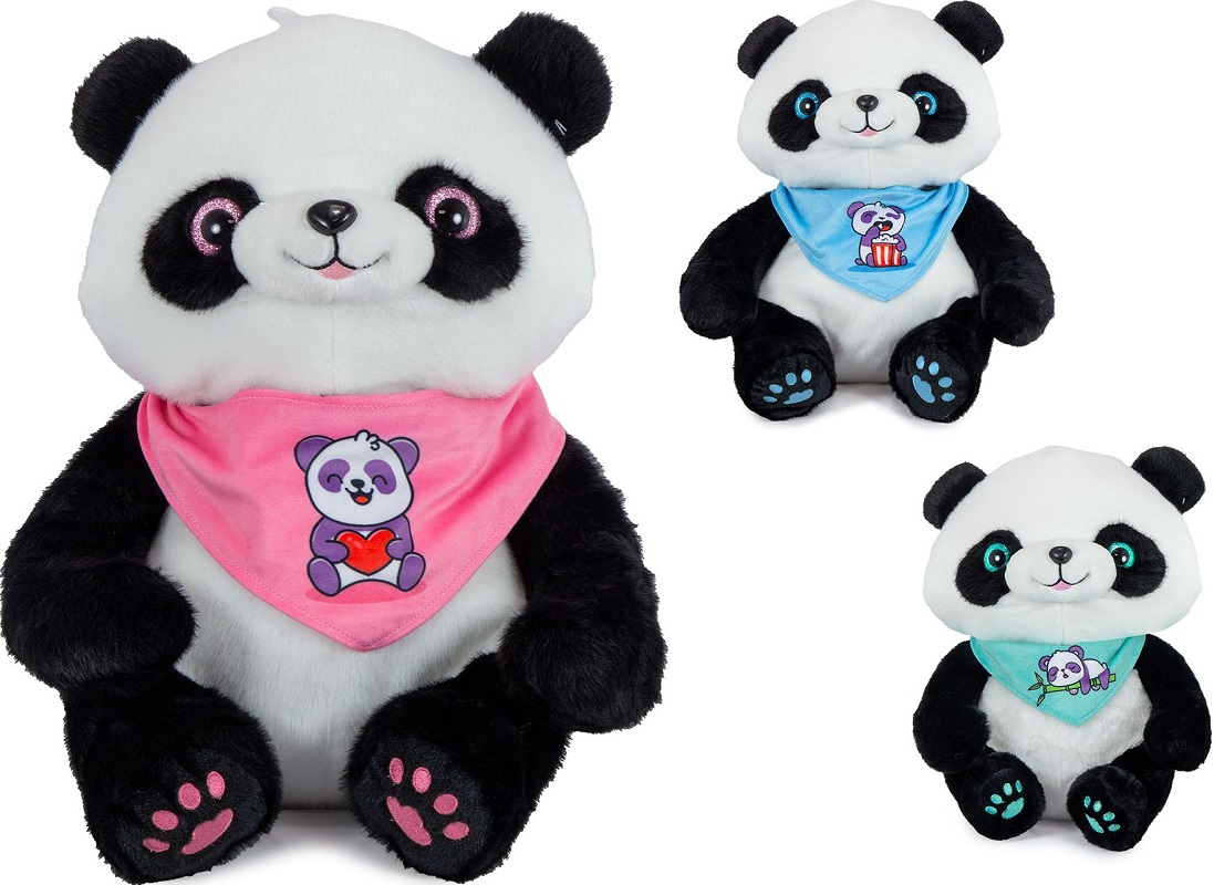 Plüsch Panda mit Halstuch & GlitzerAugen ca. 39cm 3/s (Pink, Blau, Grün)
