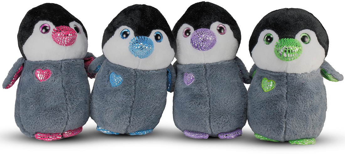 Plüsch Pinguin mit bunter Herzstickerei GlitzerSchnabel, GlitzerPfoten und Glitz