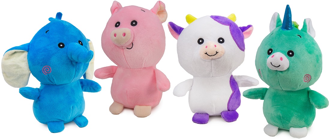 Plüsch Tiersortiment stehend Bunt 4/s ca. 20cm (Kuh, Schwein, Einhorn, Elefant)