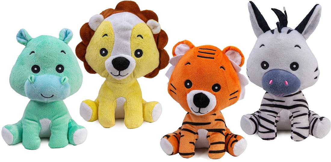 Plüsch Wildtiersortiment sitzend 4/s ca. 20cm (Löwe, Zebra, Nilpferd, Tiger)