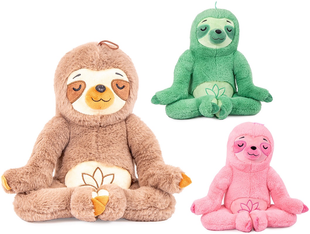 Plüsch Yoga Faultier sitzend Bunt mit Stickerei am Bauch 3/s ca. 25cm (Grün, Rosa, Braun)