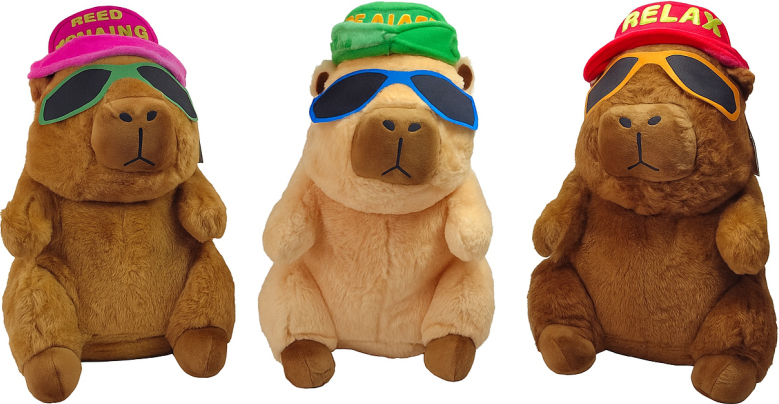 XL Plüsch Capybara sitzend, mit Sonnenbrille & Hut, 3/s ca. 40cm (Keep Smiling,