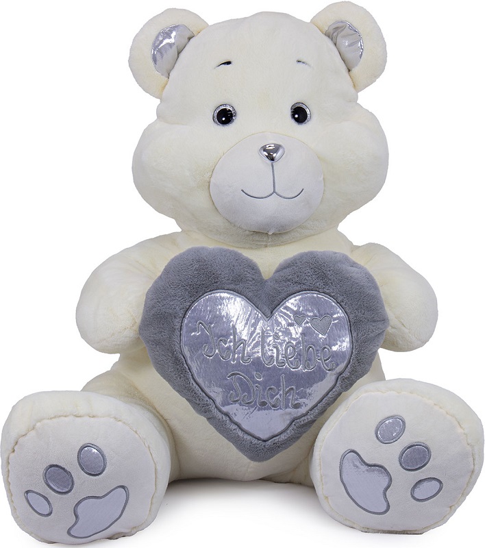 XXL Plüsch Bär mit Silber Herz "Ich liebe dich", GlitzerAugen und Stickereien ca