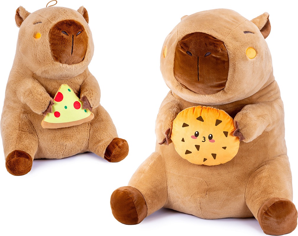 XXL Plüsch Capybara mit Snack in der Hand 2/s ca. 80cm (Pizza, Cookie)