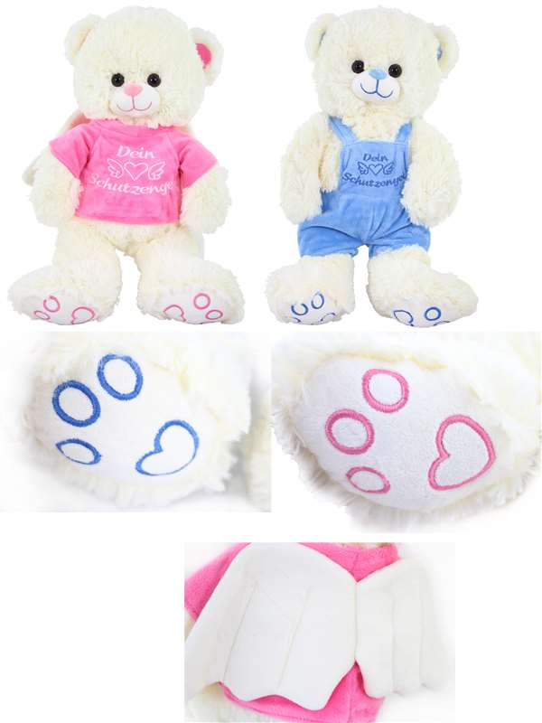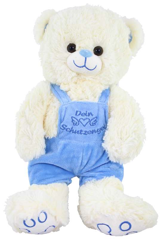 "Plüsch Schutzengelbär ""Dein Schutzengel"" mit Latzhose 2-farb. Sort. ca. 30/42