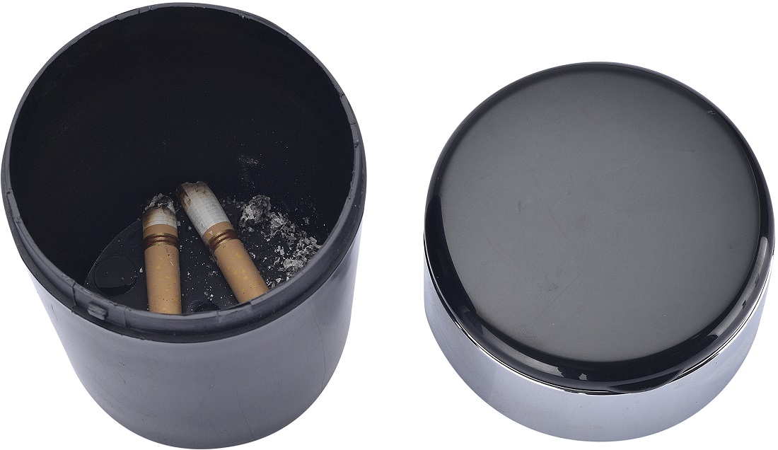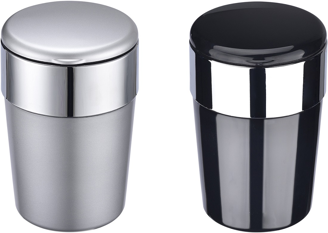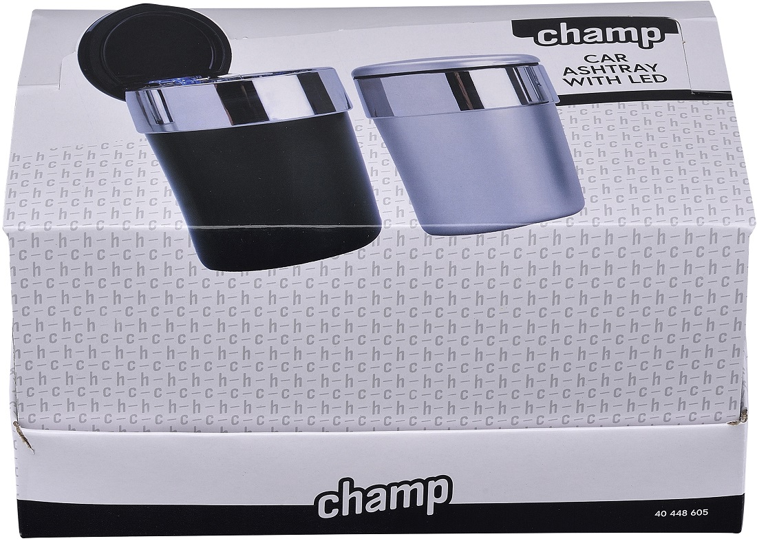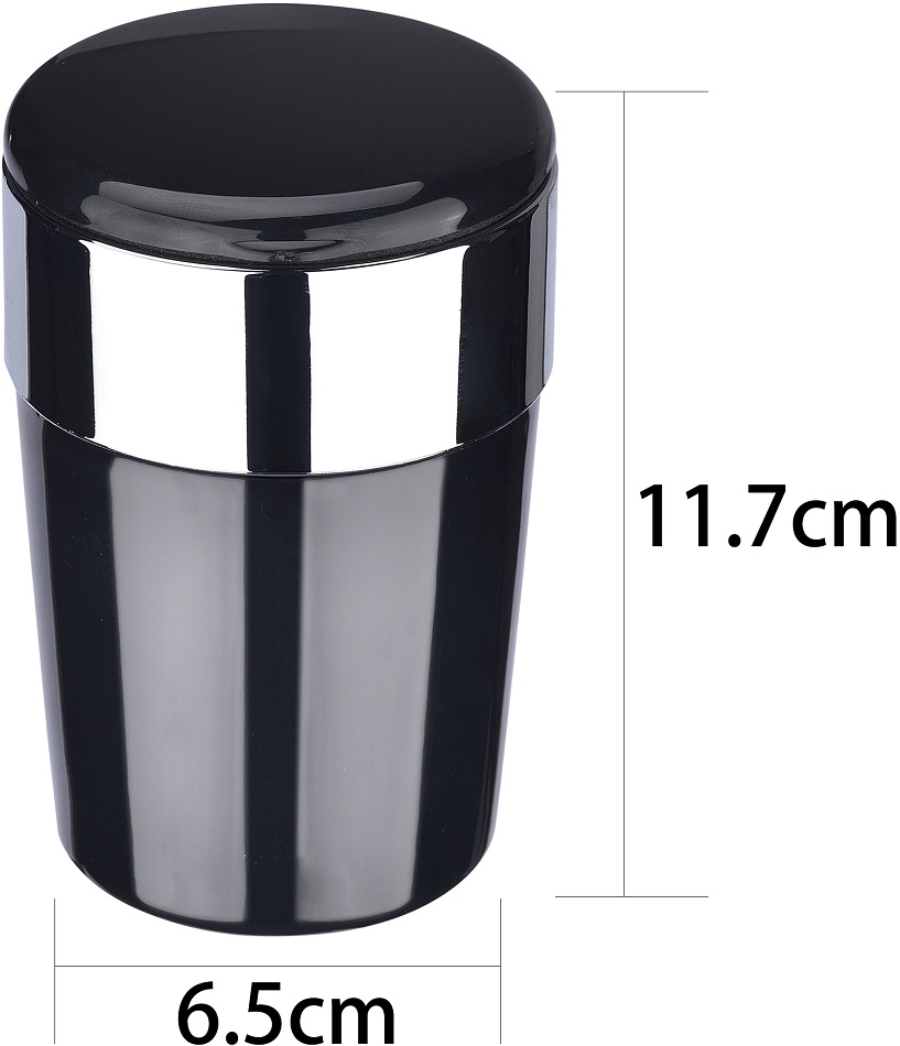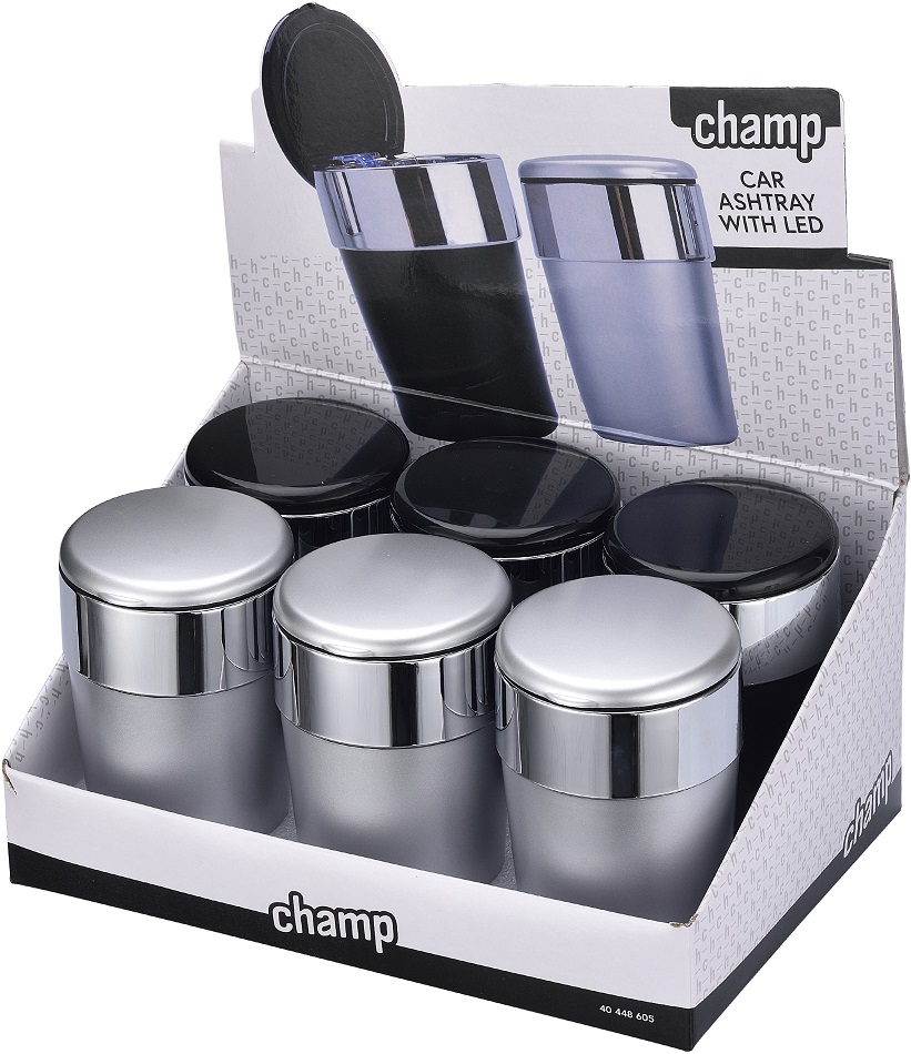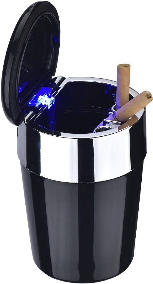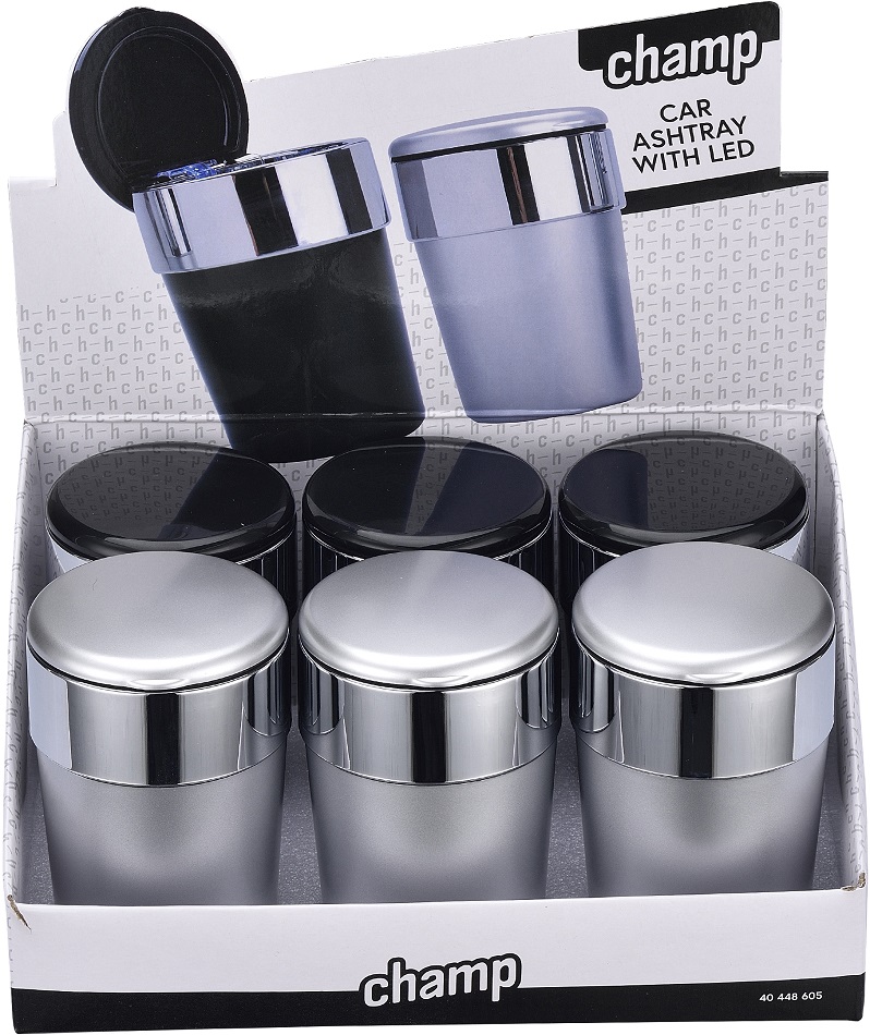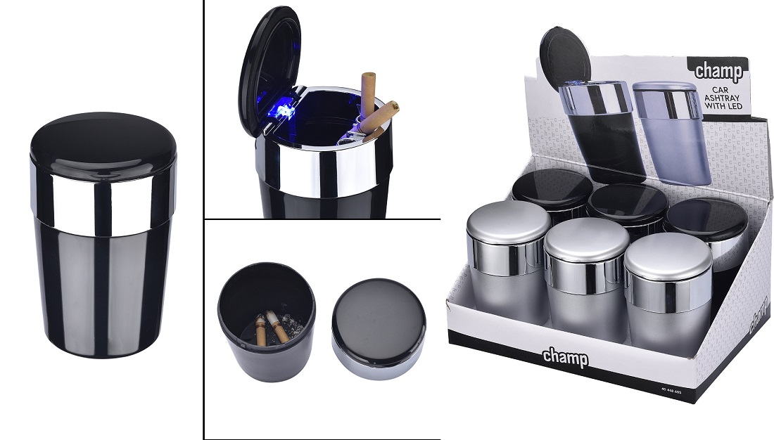 Auto Aschenbecher mit LED 2/s (Schwarz und Silber) ca. 11,7 x 6,5cm in 6er T-Dsp.
