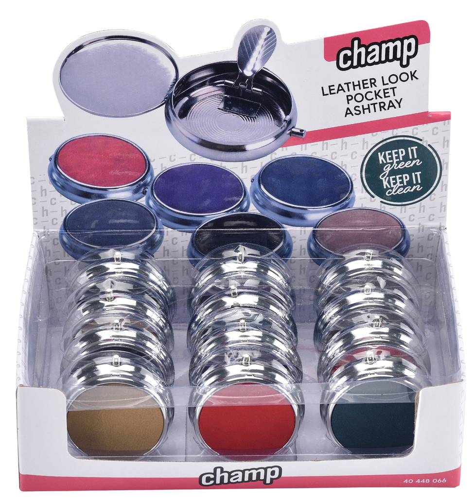 Taschenascher/Aschenbecher Leather Look 6/f - 5.0x5.0x1.7cm 12er T-Dsp.