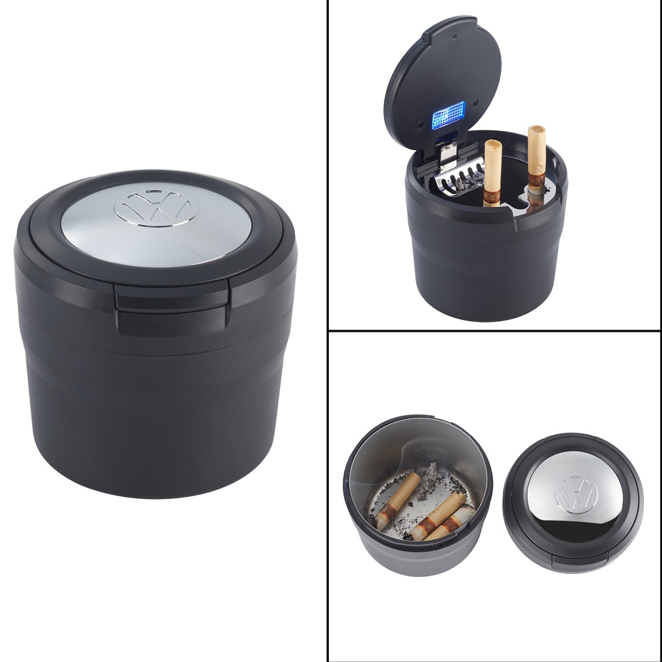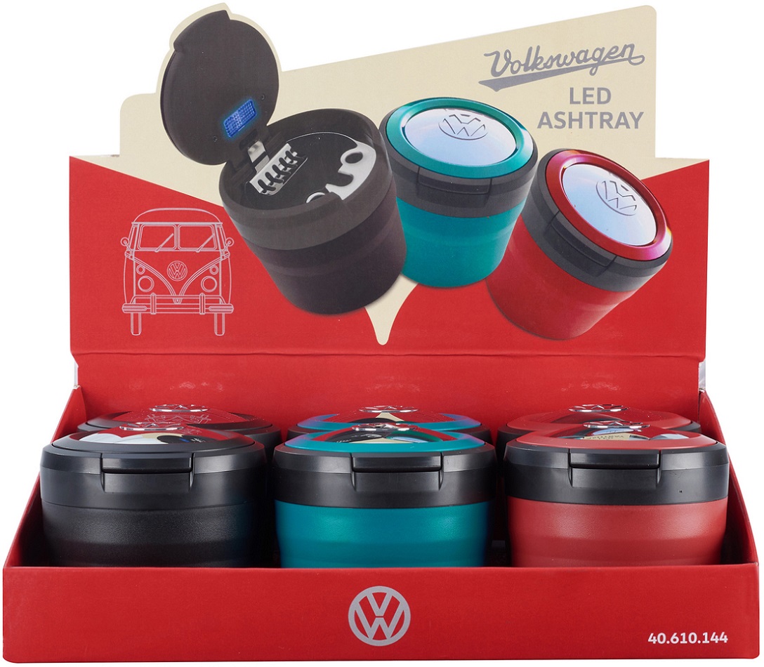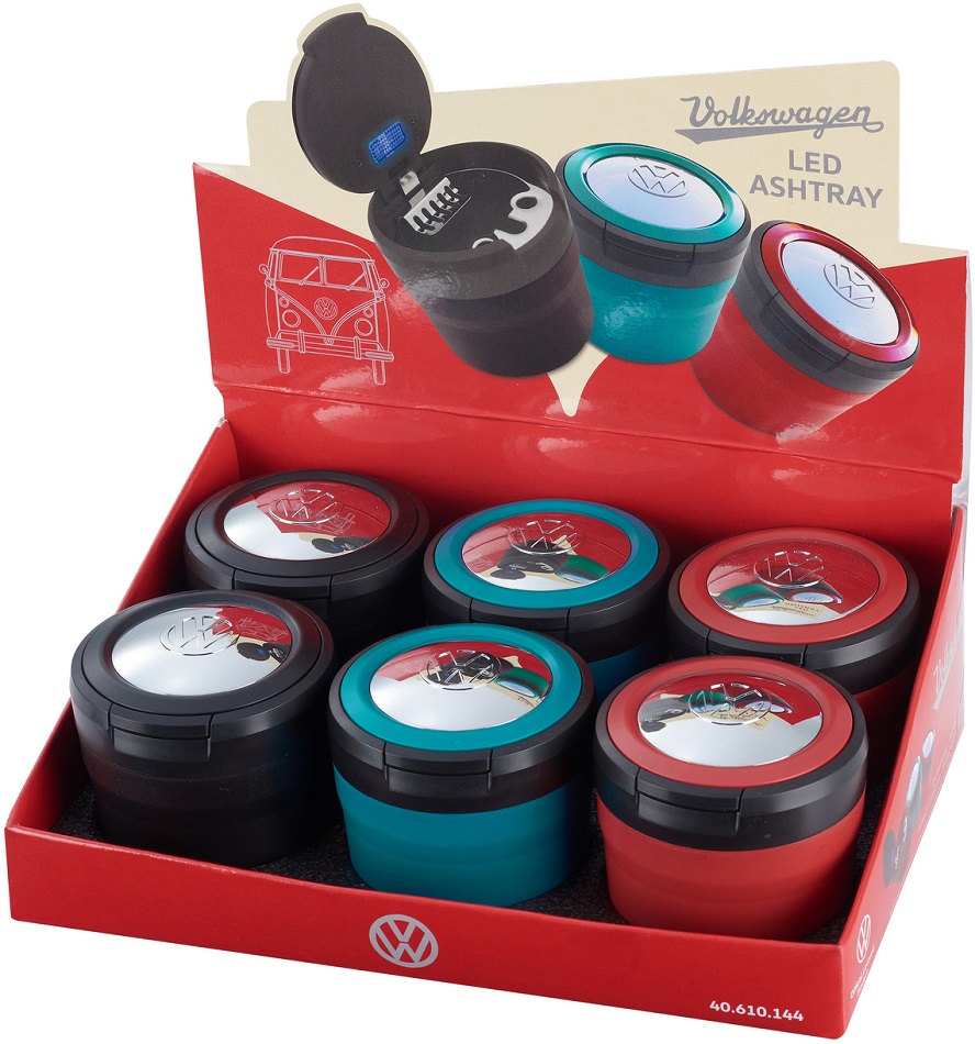 VW Auto Aschenbecher mit LED 3/s (Blau, Rot, Schwarz) im 6er T-Dsp.