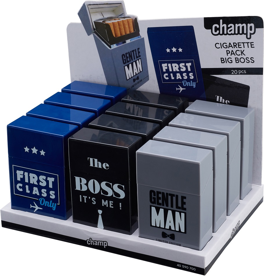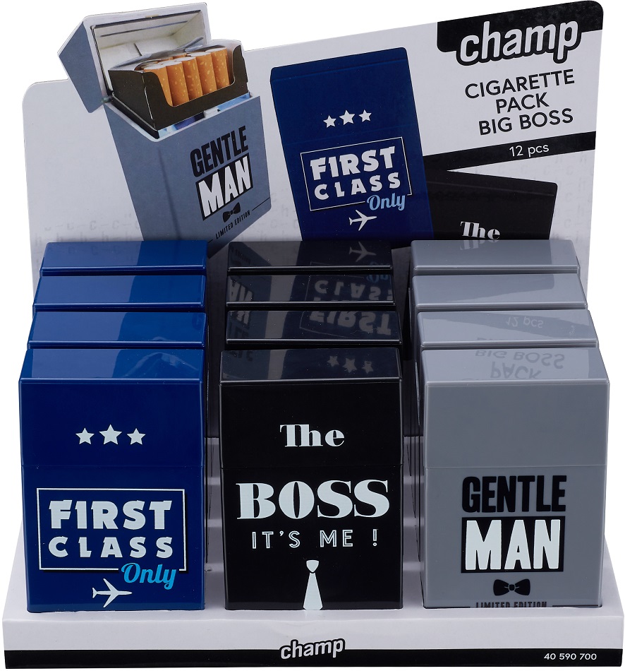 Zigaretten Box Dose BIG BOSS für 20 Zigaretten Kunststoff 3/s in 12er T-Dsp.