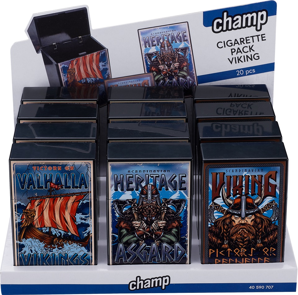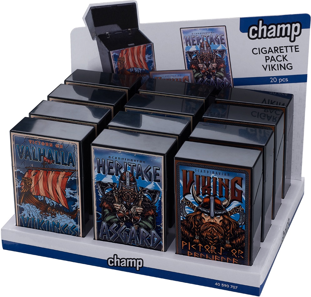 Zigaretten Box Dose VIKING für 20 Zigaretten Kunststoff 3/s in 12er T-Dsp.