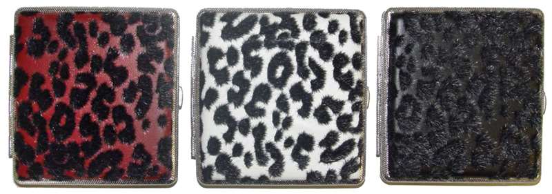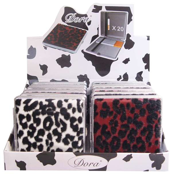 VE:12 Zigaretten Etui "Kuhfell/Stoff"Metall ca. 9,5x9,3cm im Dsp.