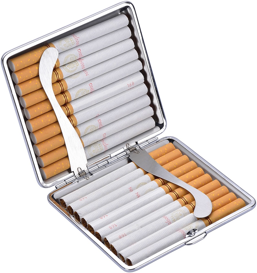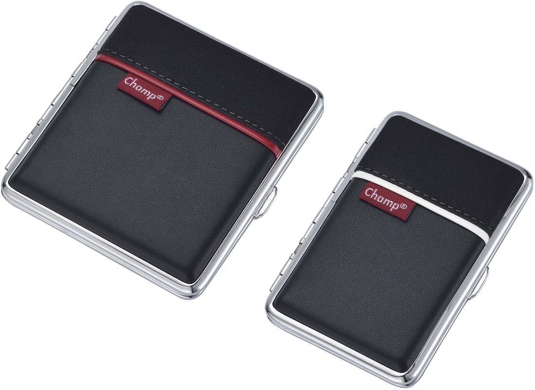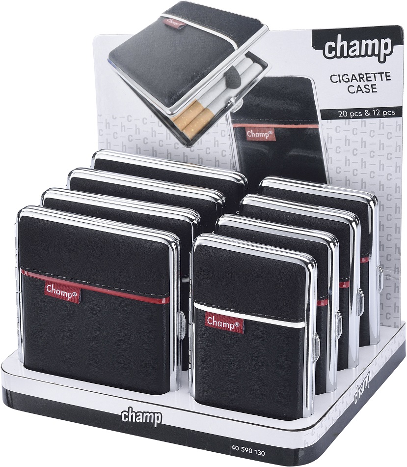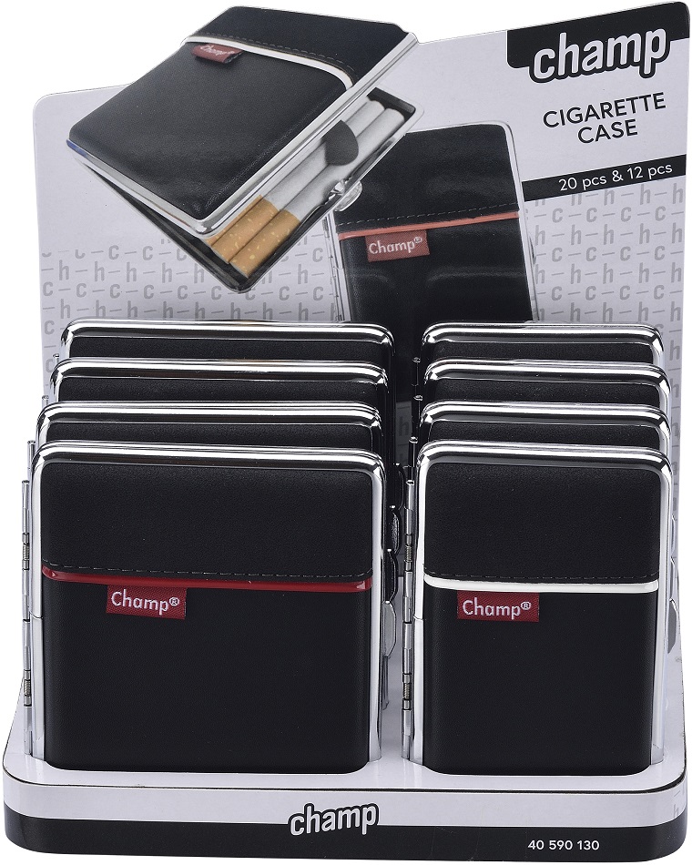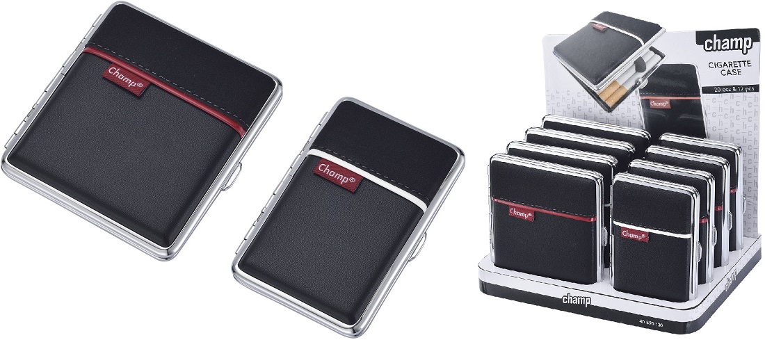 Zigarettenetui in Lederoptik (Glatt- und Wildleder) mit farbl. Applikationen für 20 & 12 Zigaretten 2/s in 12er T-Dsp.