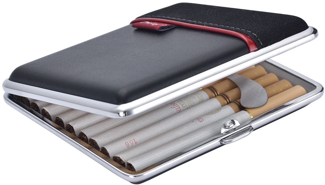 Zigarettenetui in Lederoptik (Glatt- und Wildleder) mit farbl. Applikationen für