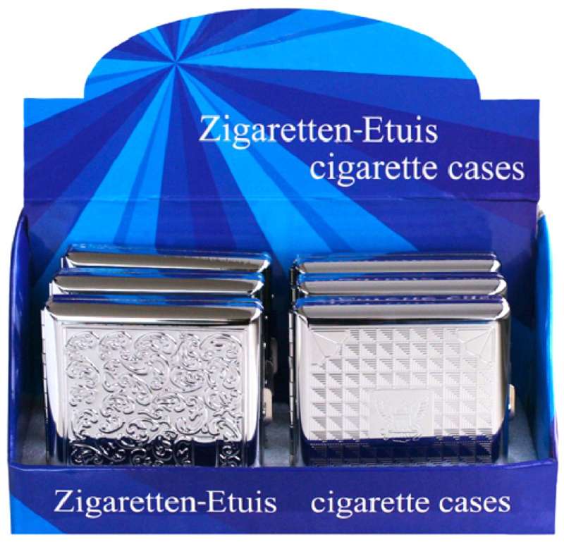 Zigarettenetui Metall mit Prägungen für 20 Zigaretten im 6er Dsp.