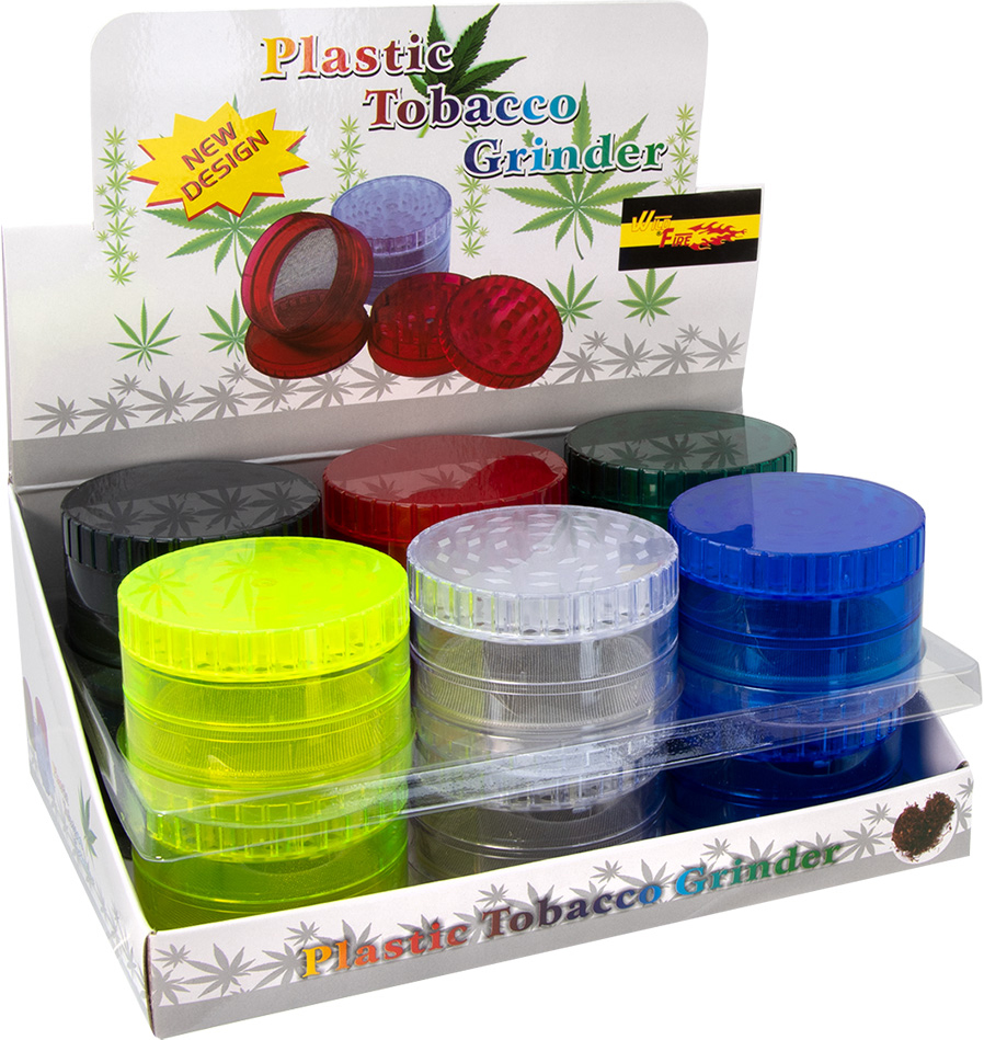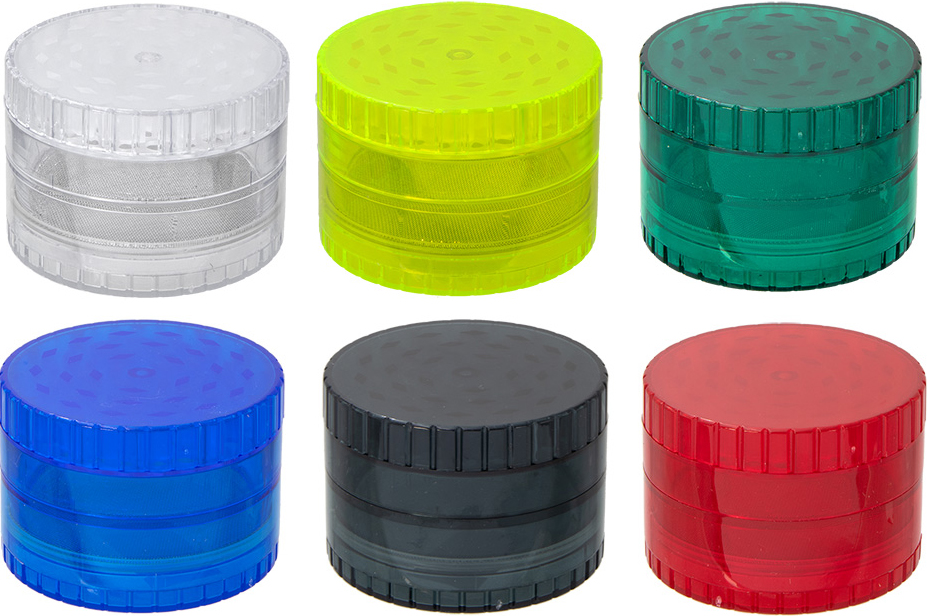Acryl Grinder Bunt-Transparent sort. 4tlg. Ø75mm 6/s (Weiß, Gelb, Grün, Blau, Schwarz, Rot) im 12er T-Dsp.