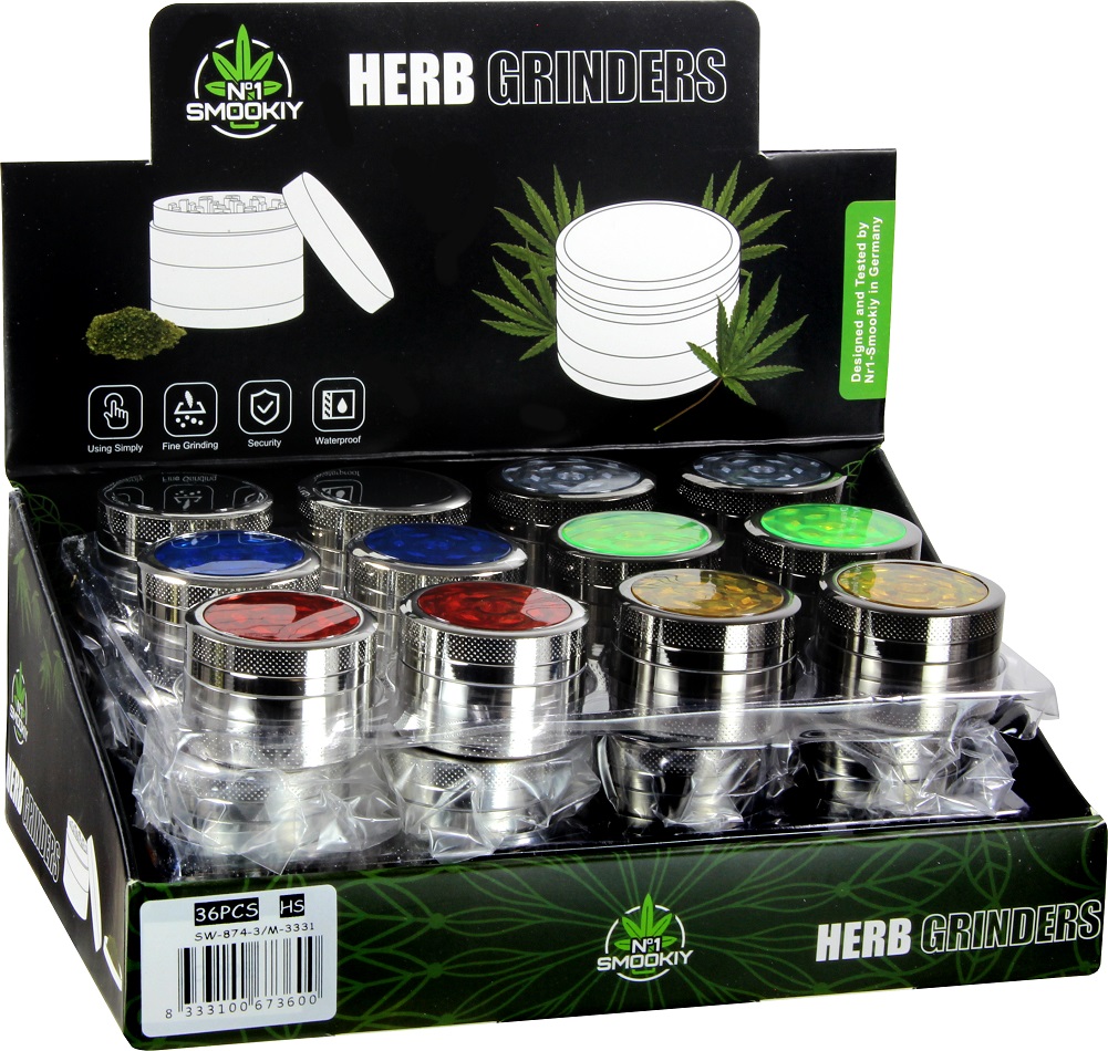 Grinder Metall mit transparentem Oberteil 6/s 3tlg. in 36er T-Dsp.