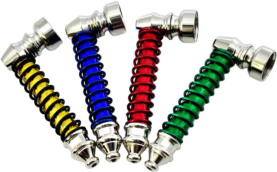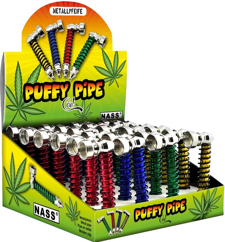 Tabak-Pfeife Metallpfeife Puffy Pipe im Coil Design 4/s im 24er T-Dsp. (Rot, Blau, Grün, Gelb)