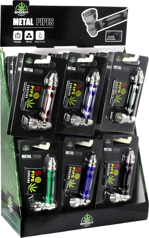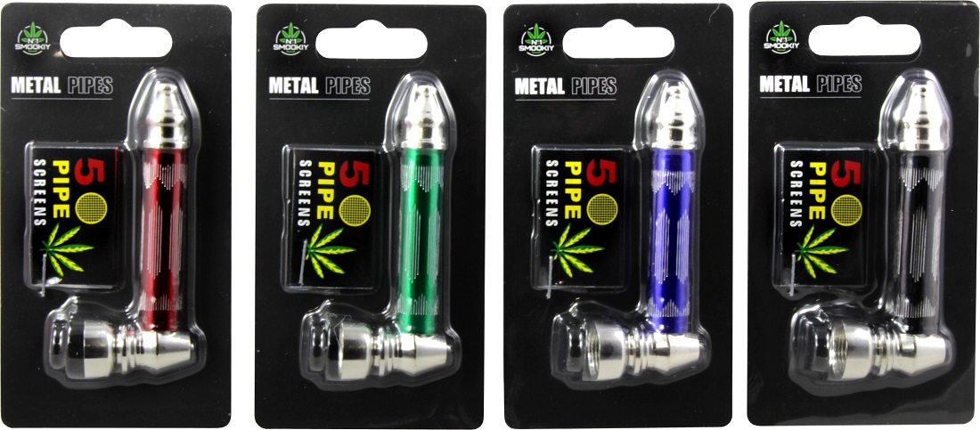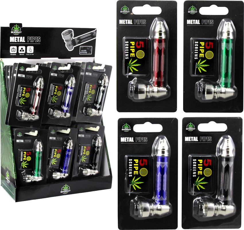 Tabak-Pfeife / Schraubpfeife Glas Modernes Muster mit je 5 Ersatz-Sieben ca. 8,5cm Ø1cm auf BK 4/s im 30er T-Dsp. (Rot, Blau, Grün, Schwarz)