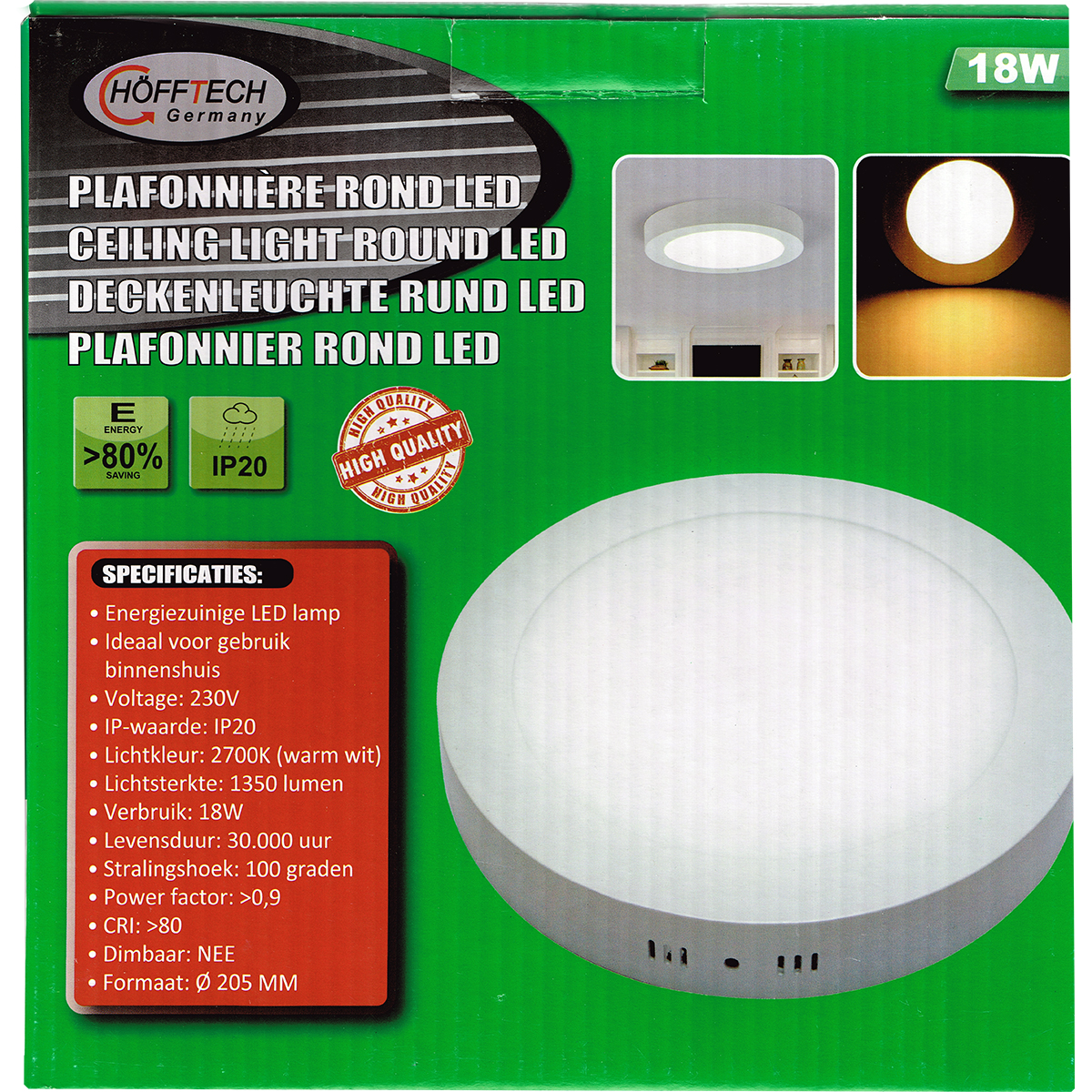 Deckenleuchte LED rund ca. Ø20,5cm 18W 1350 lumen warm weiß