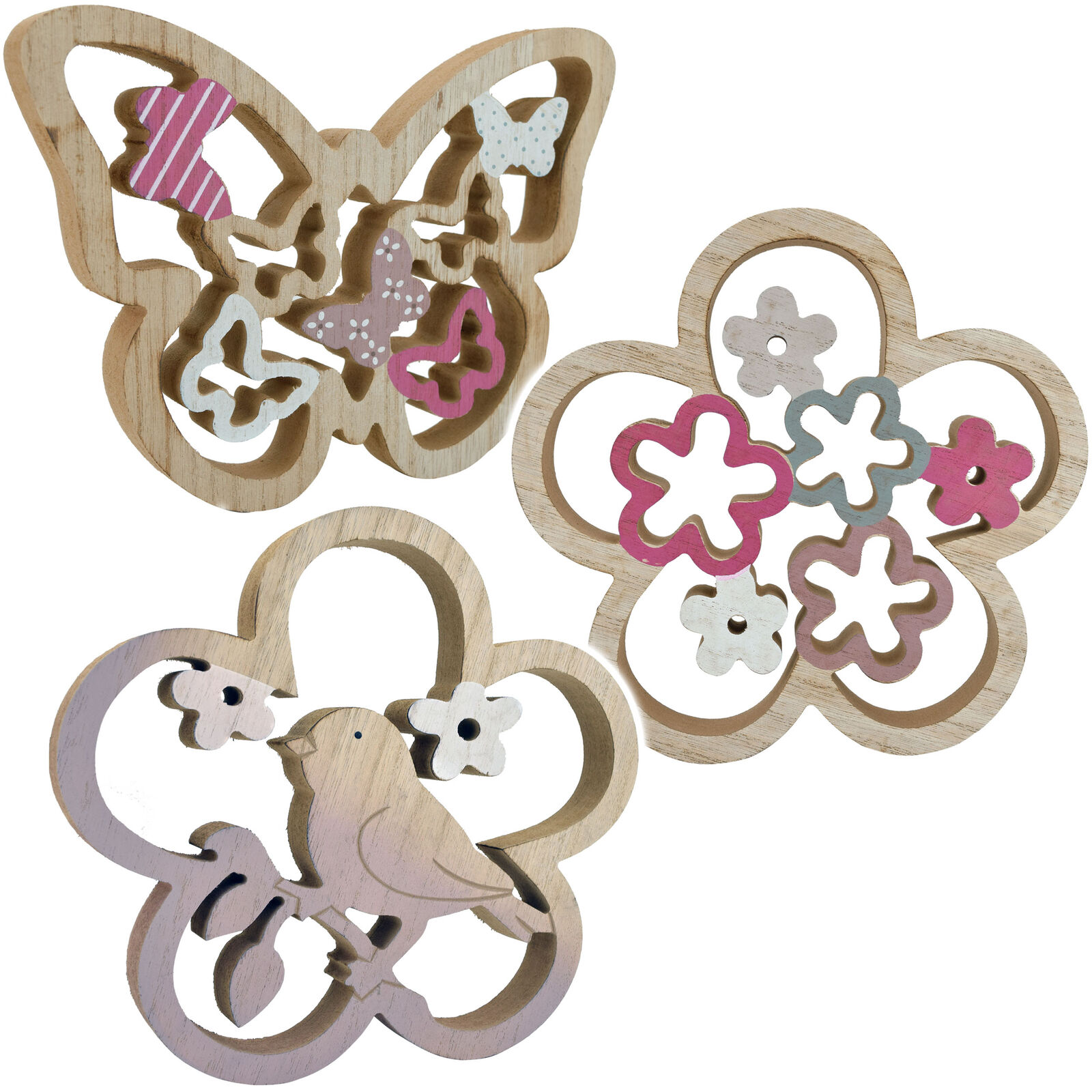 Deko-aufhänger Blume, Vogel und Schmetterling 23 x 17,5 x 2,5 cm