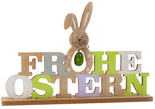 Deko Holz Schriftzug "Frohe Ostern" mit Hase ca. h=20cm b=30cm