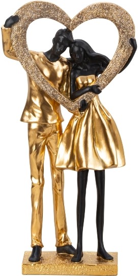 Deko Pärchen Figur stehend mit glitzerndem Herz Gold/Schwarz ca. 35,5 x 17,5cm