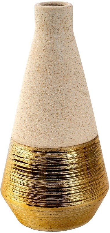 Deko Vase kegelförmig schmale Öffnung im Gold / Sand Design ca. 28,5cm Ø 14cm