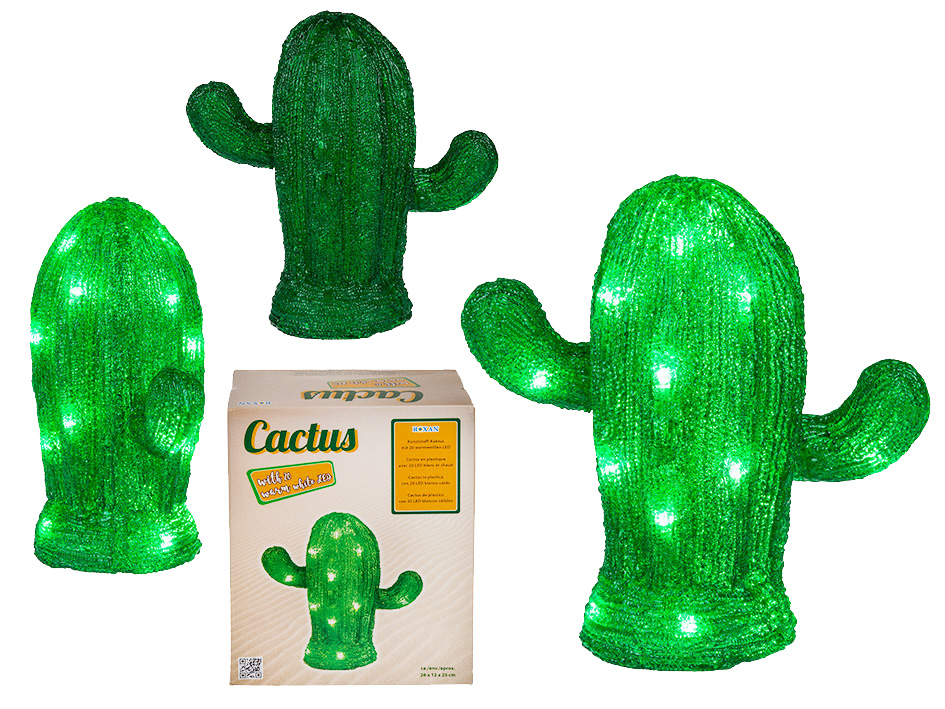 Grüner Kunststoff-Kaktus mit 20 warmweißen LED, ca. 26 x 12 x 26 cm, für 3 Micro Batterien (AAA) in Geschenkbox