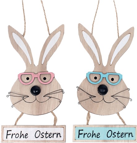Holzaufhänger "Frohe Ostern" Hase mit Brille ca 13,5x 6,5cm