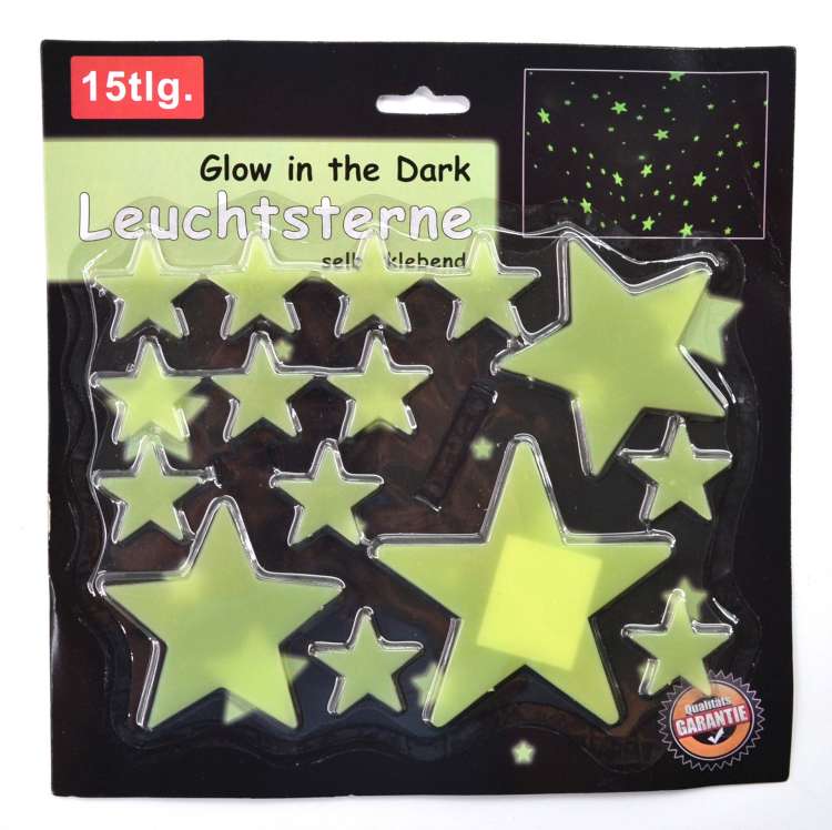 Leuchtsticker ""STARS"" ""Glow in the Dark""15tlg. Selbstklebend 12x3cm 3x8cmau