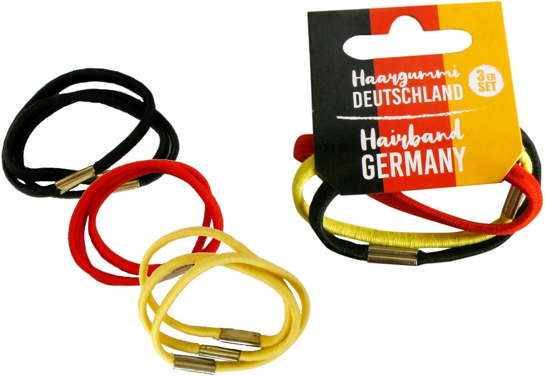 Haargummis im Deutschland Muster - Schwarz, Rot, Gold - 3er Set auf Blisterkarte ca. 6cm