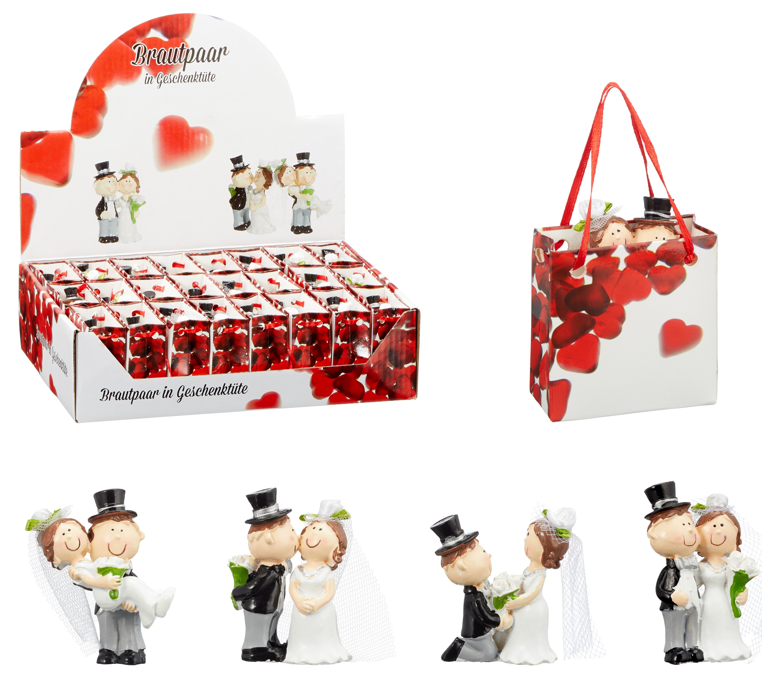 Brautpaar in Geschenktüte aus Polyresin ca. 3,5x5,5cm in 24er T-Dsp.