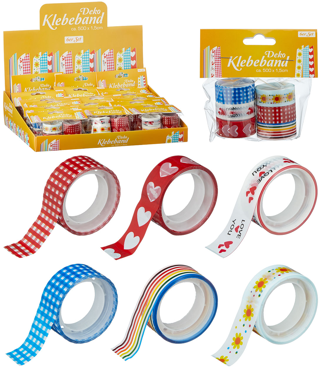 Motivklebeband , 6er Set , 6/s 500x1,5cm Headcard 18er T-Dsp.