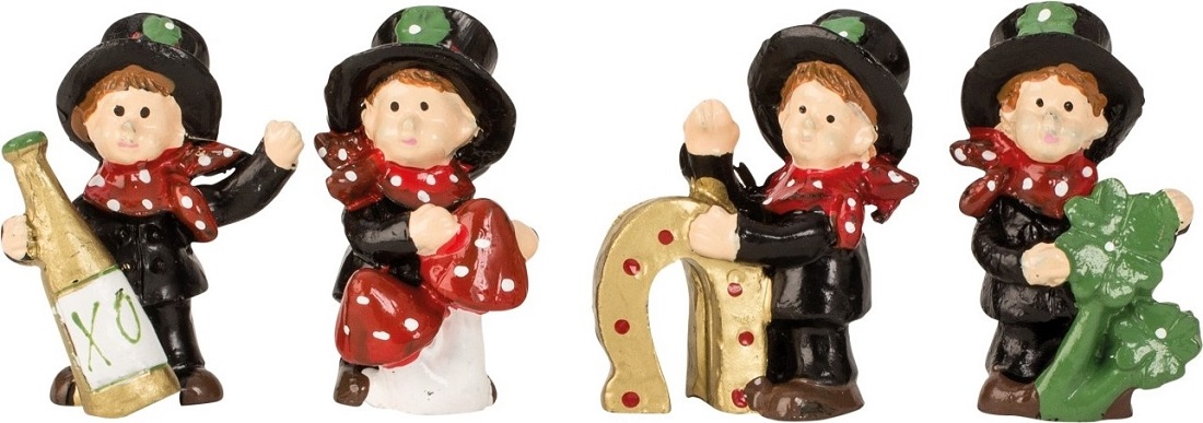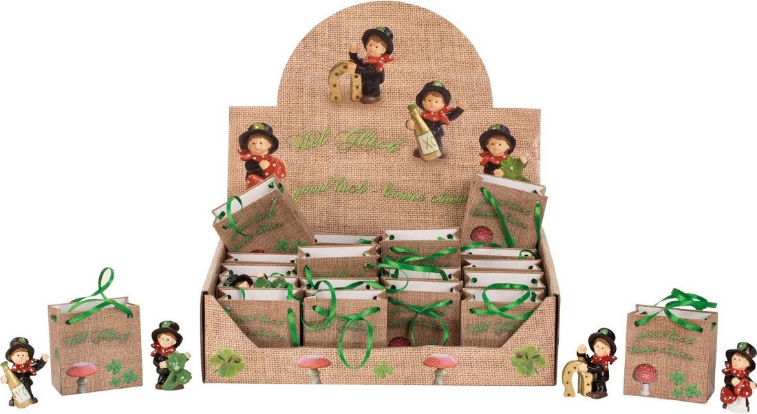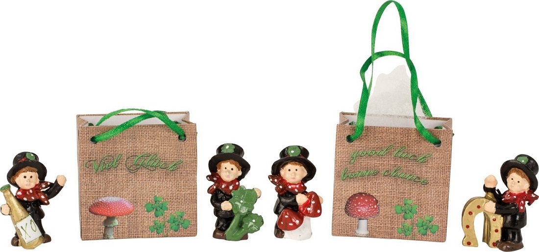 Schornsteinfeger Glücksbringer im Tütchen ca. 4,5 x 3cm 4/s im 24er T-Dsp. (mit Flasche, -Kleeblatt, -Hufeisen, -Pilzen)