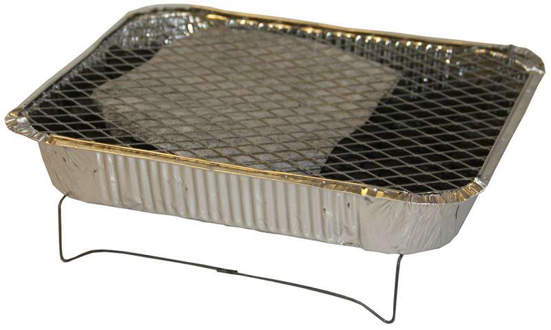 Einweg-Grill Aluminium komplett mit Holzkohle. ca. 24,5x30x4,8cm