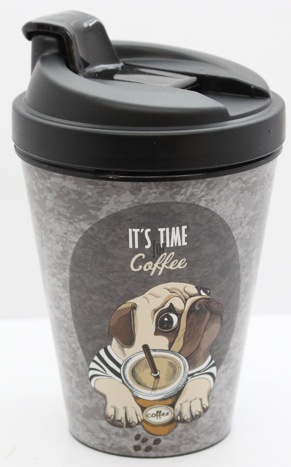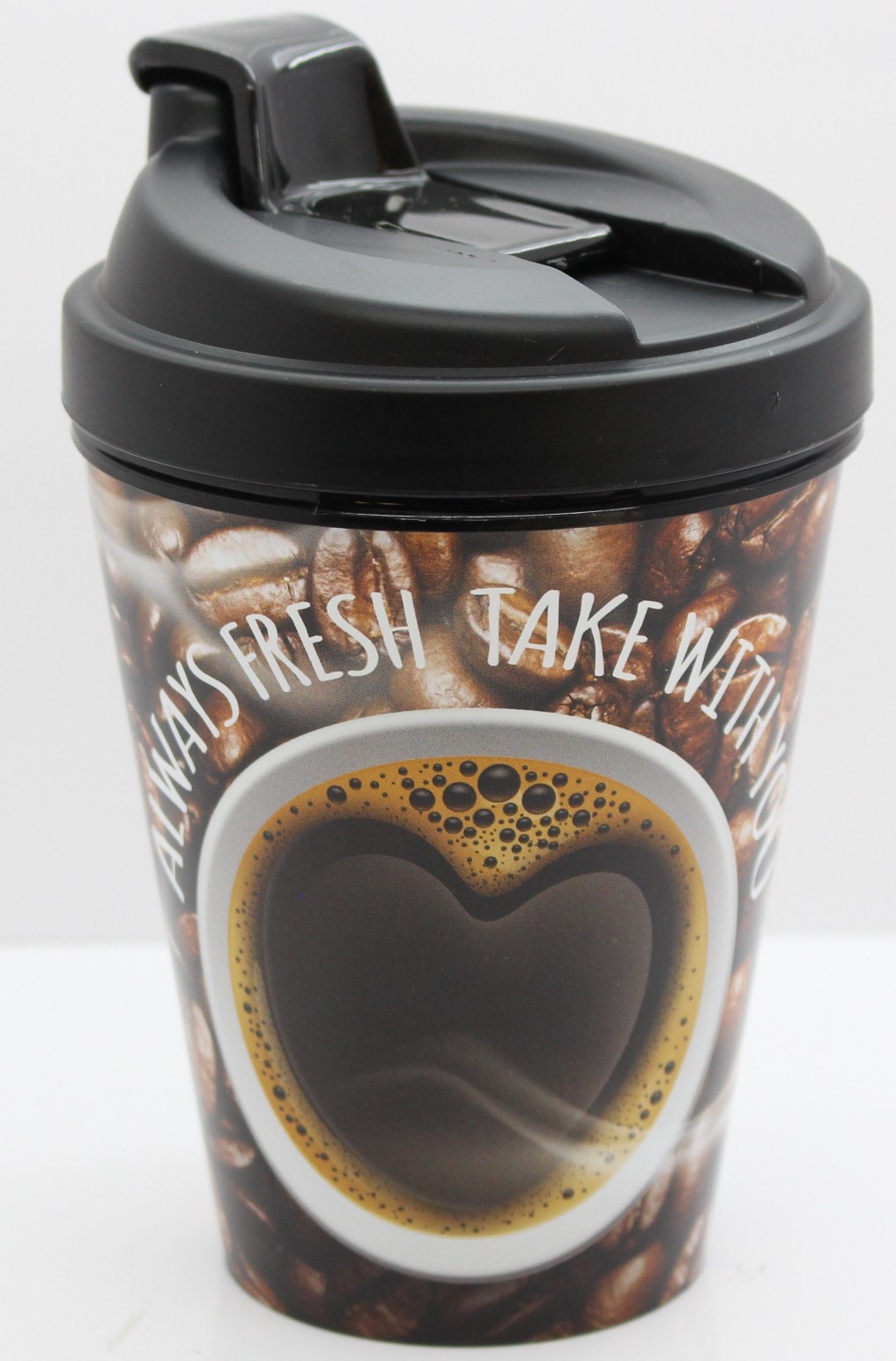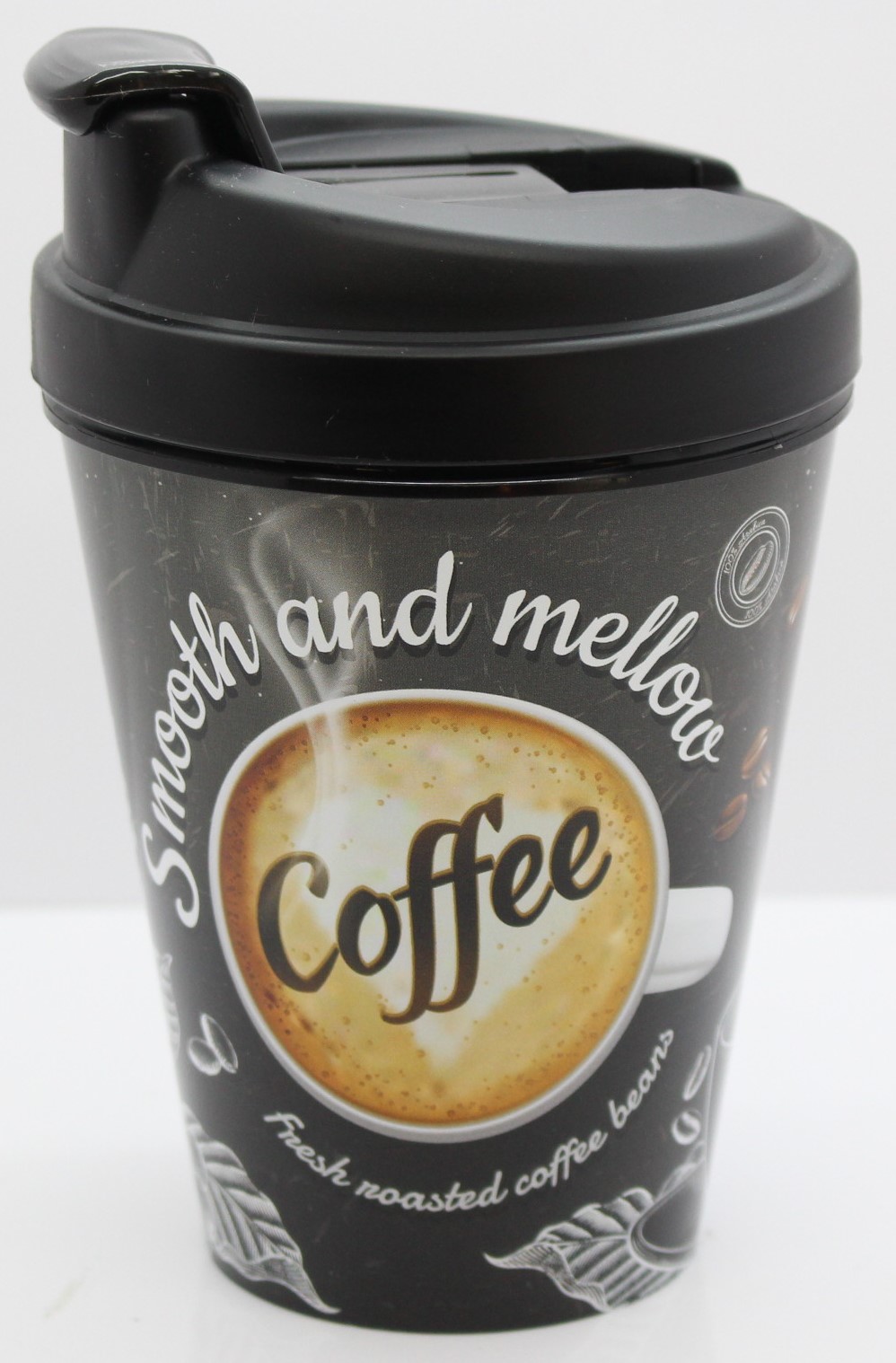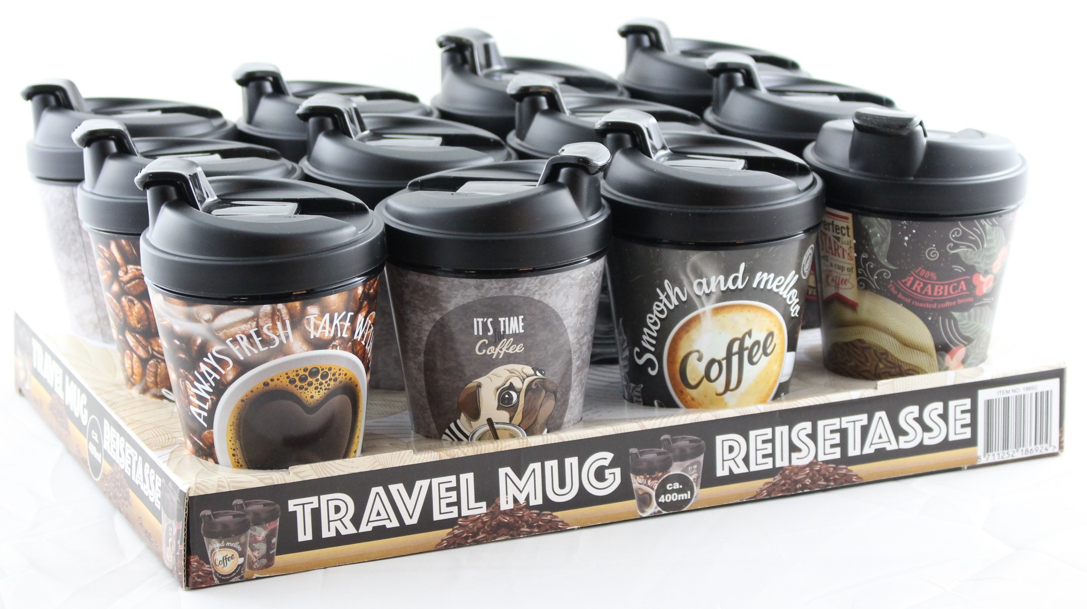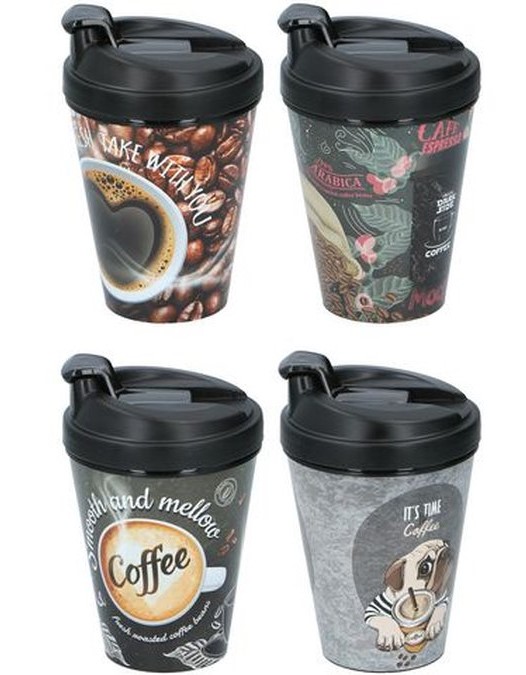 Kaffee To Go Reisebechher klein, 4 Designs 400ml verschließbarer Deckel in schwa