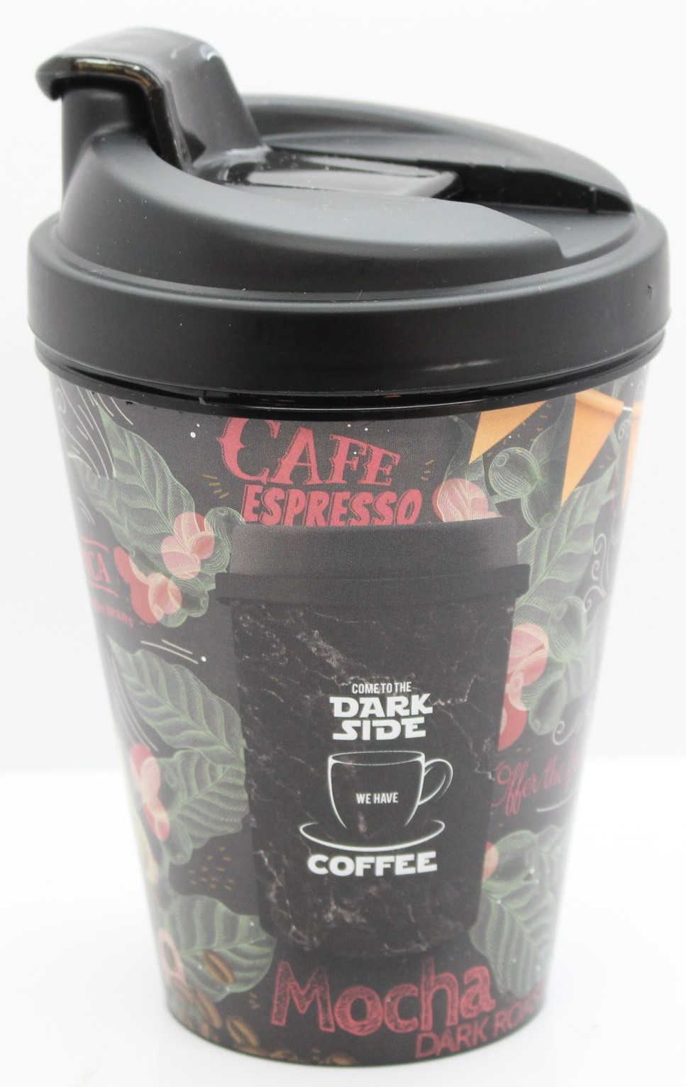 Kaffee To Go Reisebechher klein, 4 Designs 400ml verschließbarer Deckel in schwarz