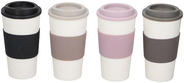 Kaffee To Go Reisebechher klein, 4/s 450ml in 12er Tray (pink, schwarz, grau, be