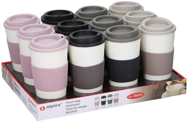 Kaffee To Go Reisebechher klein, 4/s 450ml in 12er Tray (pink, schwarz, grau, beige)